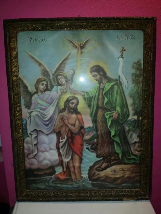 Etapele picturi pe sticla a icoanei: Privind spre această icoană, sufletul este cuprins de admiraţie dar, poate, şi de curiozitate, căci ce ar putea însemna, oare, îngerii. Botezul domnului mai este denumit și „epifanie" sau „teofanie", după termenii grecești επιφάνια și θεοφάνεια, care înseamnă „arătarea domnului", respectiv „descoperirea / revelarea domnului". Botezul lui hristos, care se praznuieste pe 6 ianuarie, sub numele de teofanie (epifanie), este descris de iconografia traditionala astfel: Etapele picturi pe sticla a icoanei:.. Pentru aceasta hristos domnul a aşteptat botezul până la această vârstă, ca să împlinească legea cu toate vârstele, să sfinţească firea noastră şi să ne dea putere, ca să biruim patimile şi să ne ferim de păcatele cele de moarte.