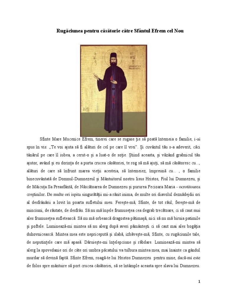 Rugăciunea părinților pentru căsătoria fiului lor 7. Rugăciunea tinerilor care vor să se căsătorească 8. Rugăciune către sfântul efrem cel nou 6.
